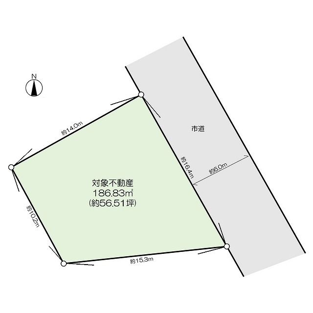接道状況北東側 公道 幅員 約6.0mに約16.4m接道